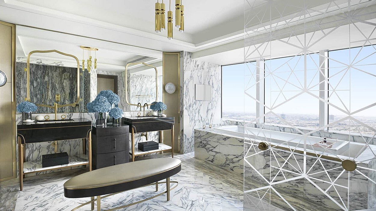 V apartmá je obývací pokoj, soukromá kancelář, jídelna, mediální místnost a několik ložnic. K dispozici jsou také tenisové kurty, masáže a lázně se saunou a parní lázní.