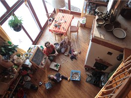 "Ani na záchodě zatím nemáme dveře, je tam pouze závěs," dozvídám se. Ani ústřední topení tu nenajdete, jen velká zděná kamna uprostřed. "Slaměných staveb je u nás několik desítek. Mají o ně zájem hlavně ti, kteří chtějí nízkorozpočtový dům, nebo je jim takové řešení sympatické z hlediska jejich životního stylu," říká Gavlovský.