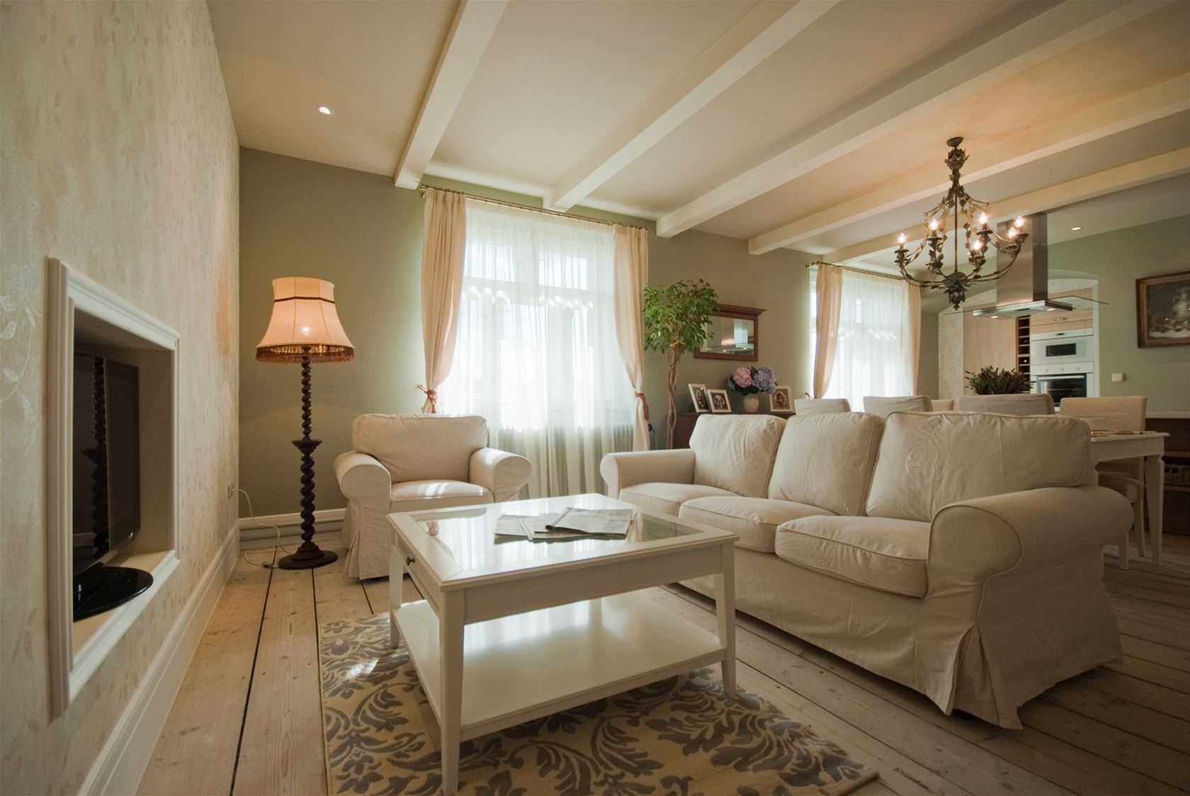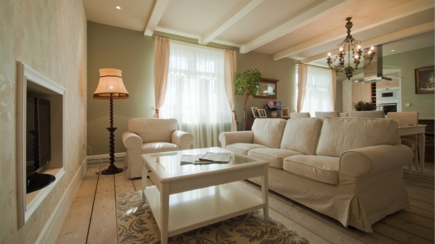 Karolína Reslerová a Petr Záluský se rozhodli vytvořit interiér ve stylu Provence, s lehkým "dotykem" anglického venkova a stylu vintage. "K tomu jsme využili konzervativnější výrazové prostředky, vyšší sokly a oblouk," vypočítává Petr Záluský.