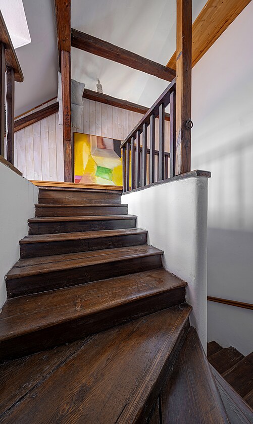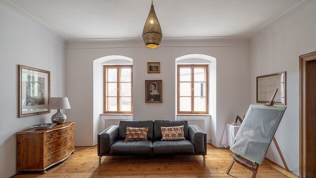 Mezonetu o ploše 240 m2 se dvěma terasami přidává na výjimečnosti poloha v historickém centru přímo na starých schodech vedoucích k baroknímu zámku. Kvůli bydlení v renesančním domě přitom nebylo nutné rezignovat na moderní komfort. Objekt i byt prošly koncem 90. let minulého století rekonstrukcí.