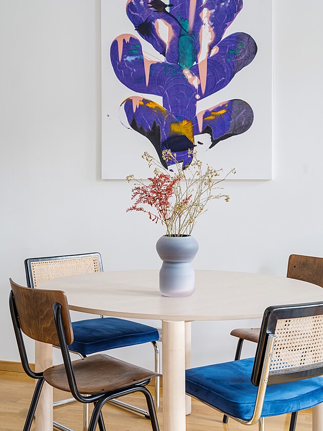 Protože se Matěj pracovně pohybuje v kulturním prostředí, objevil pro sebe mladé, ale zároveň už uznávané české tvůrce. Na stěnách „visí“ Johana Pošová, Patrik Kriššák či Lucie Jindrák Skřivánková.