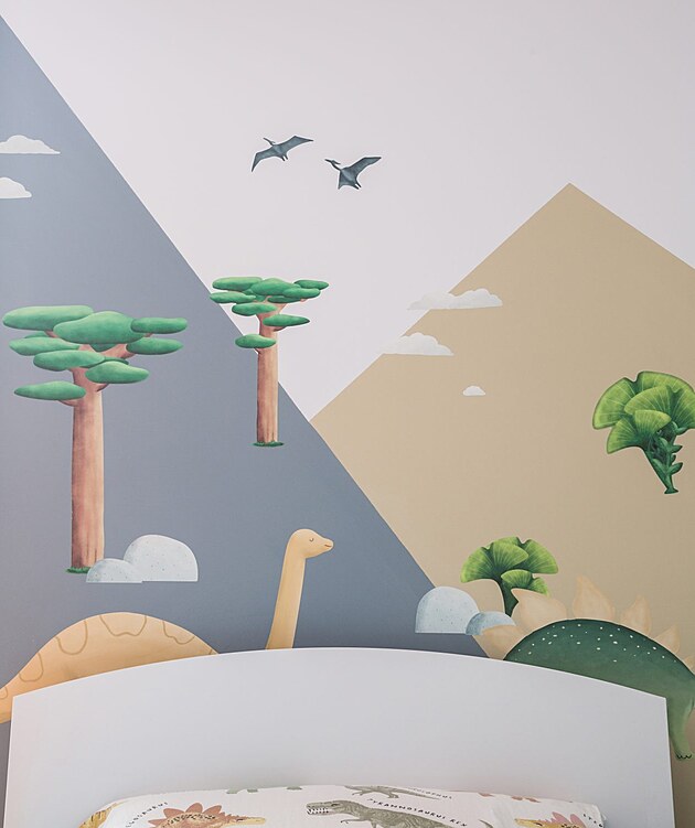 Tapety v dětském pokoji nejsou „dětsky naivní“, ale mají vlastně nadčasový dekor.