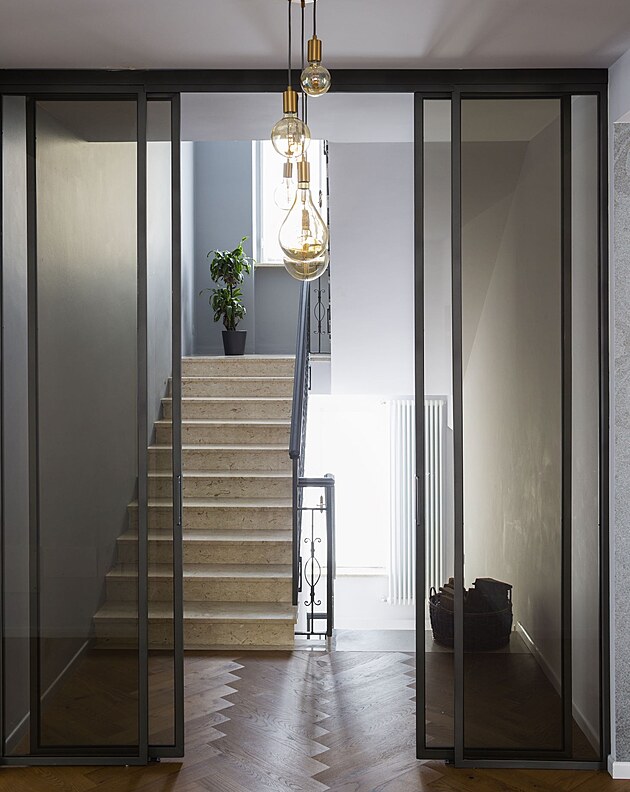 Minimalistický a moderní design prosklených příček dodává interiéru nadčasový vzhled.
