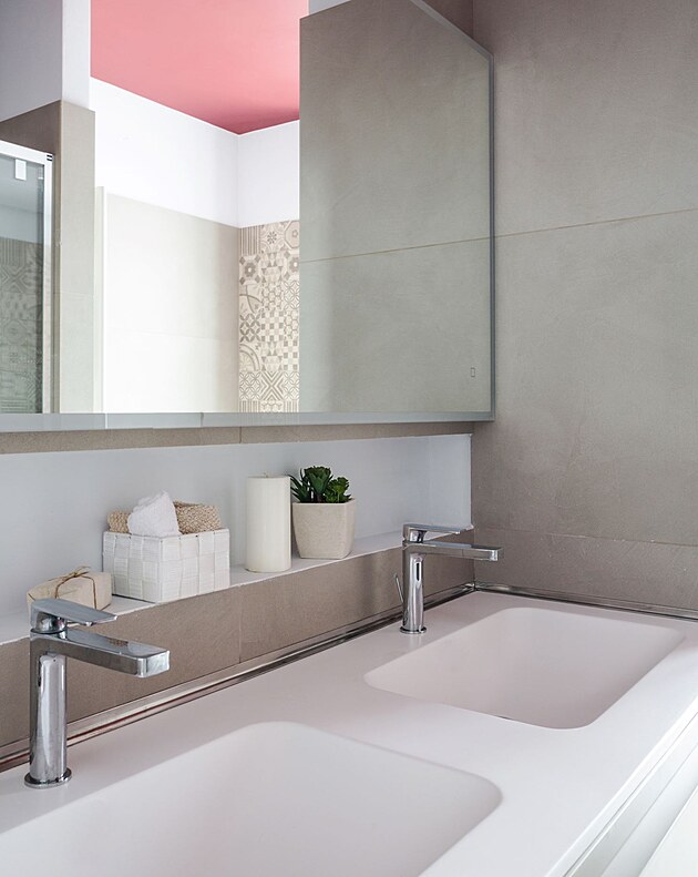Vodovodní baterie, vybrané pro obě koupelny: jsou ze série Pois od společnosti Ritmonio s jednoduchými a elegantními liniemi.