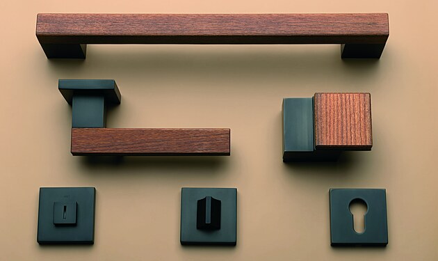 „Měl jsem představu, že by na klikách mohl být použitý v interiéru se opakující ořechový dekor, který by v pozitivním slova smyslu rozbil jednolitost čistých bílých dveří,“ popisuje Branislav Mikitka.