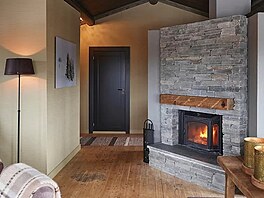 Dominantu obývacího pokoje představoval velký bílý krb, který zabíral spoustu místa. Místo něj proto přišel nový, obložený břidlicí, mezi kameny pak zapustil Ole krbovou římsu ze starého dřeva. Krbová vložka však zůstala původní.