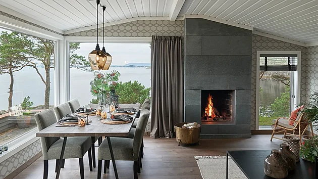 Nová dubová podlaha a bílý strop prostor opticky zvětšily. Nádherný výhled na fjord si teď mohou majitelé vychutnat od velkého jídelního stolu Piro. Ten lze dokonce ještě rozložit na větší.