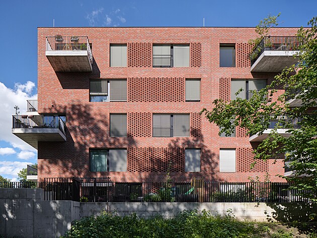 Novostavba u náhonu a řeky je jednoduchý pětipodlažní kvádr s fasádou z červené režné cihly, velkými francouzskými okny a kombinací lodžií a balkonů. Vztahuje se k řece svou pravidelností a otevřeností.