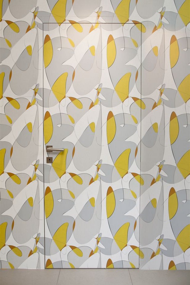 Posuvné dveře Flamenco, k dispozici do výšky až 250 cm, povrch dýha makasar ve vysokém lesku, cena (bez DPH) od 17 000 Kč