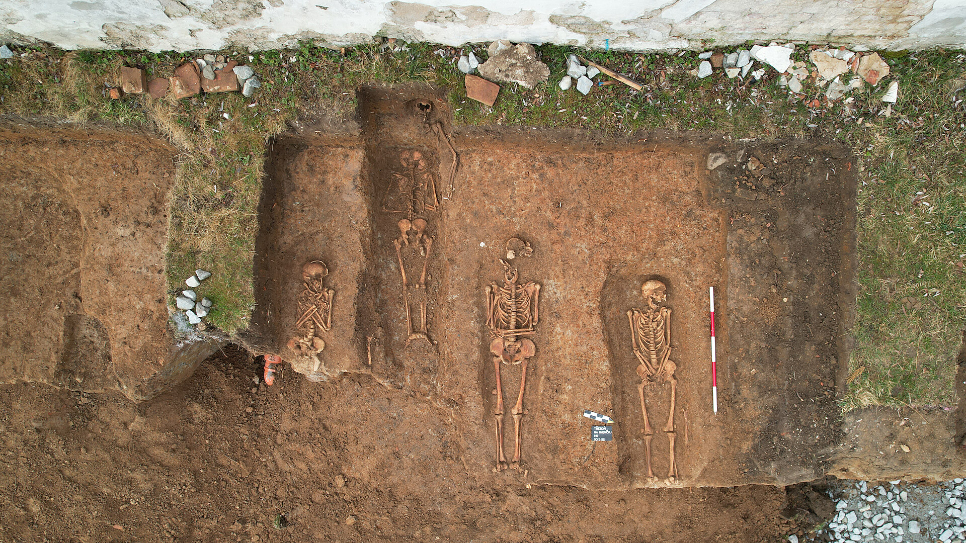 „Na hřbitově převažovaly běžné jednočetné hroby, ale v několika případech jsme nalezli uložení dvou nebo tří jedinců do jedné jámy. V jedné tam například spočinuly tři děti ve věku sedm až čtrnáct let. Příčina úmrtí a společného uložení je nicméně neznámá,“ sdělil archeolog.