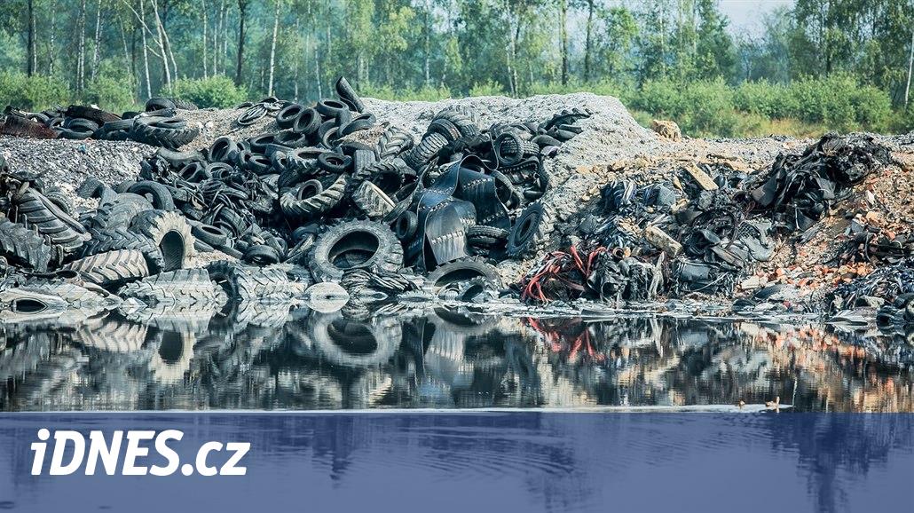 Kromě vápna sem nechalo Diamo navážet rekultivační materiál včetně ojetých pneumatik, které jsou na kalojemech dobře viditelné i z dálky. Laguna za den pojme až dva tisíce tun materiálu.