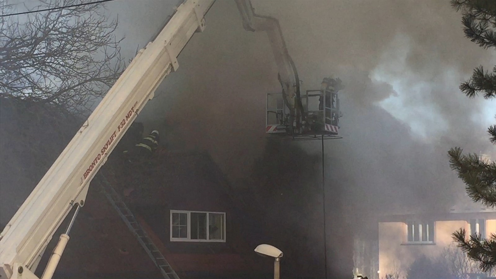 Před jednou hodinou odpoledne vyjížděli českobudějovičtí hasiči s výškovou plošinou, aby zabránili šíření požáru, který propukl v jednom z rodinných domů ve Včelné.