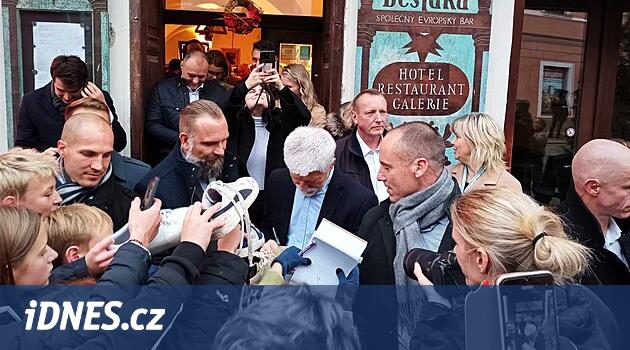 Nejdřív však dorazil na náměstí, kde hlavu státu očekávali jeho příznivci. Žáci místní základní školy se předbíhali ve sbírání Pavlova podpisu. Nejeden chlapec odcházel s podepsanými teniskami.