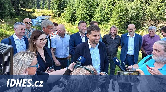 Ministr Hladík představil na louce u Modravského potoka plány na obnovu Roklanské chaty, která je napadená dřevomorkou. Do dvou let má začít její sanace.