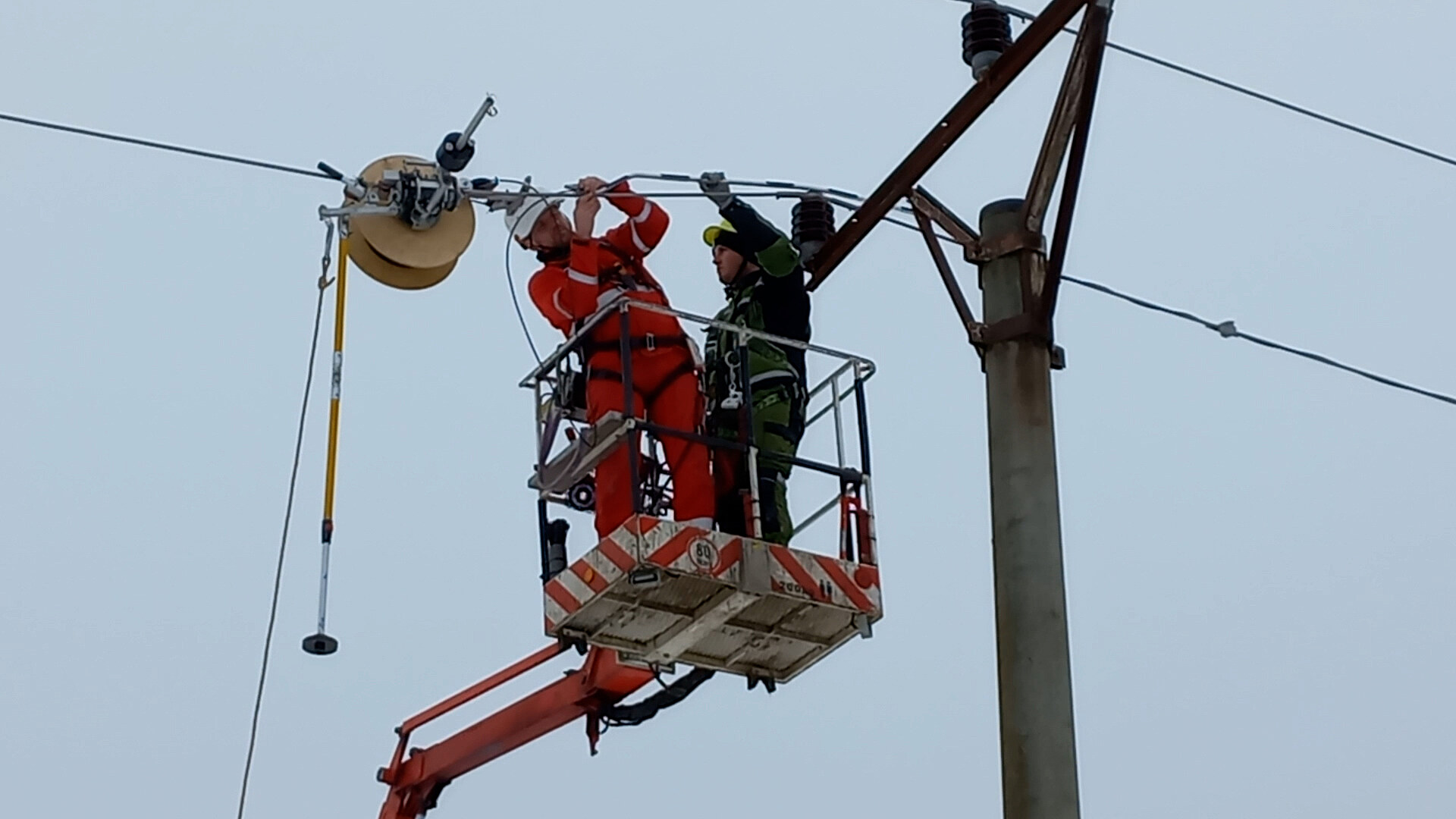 Používají při tom u nás zatím téměř nevyužívanou technologii, kdy pomocí cívky ovíjejí optický kabel kolem klasického vodiče. Díky této metodě nemusejí stavět nové sloupy.