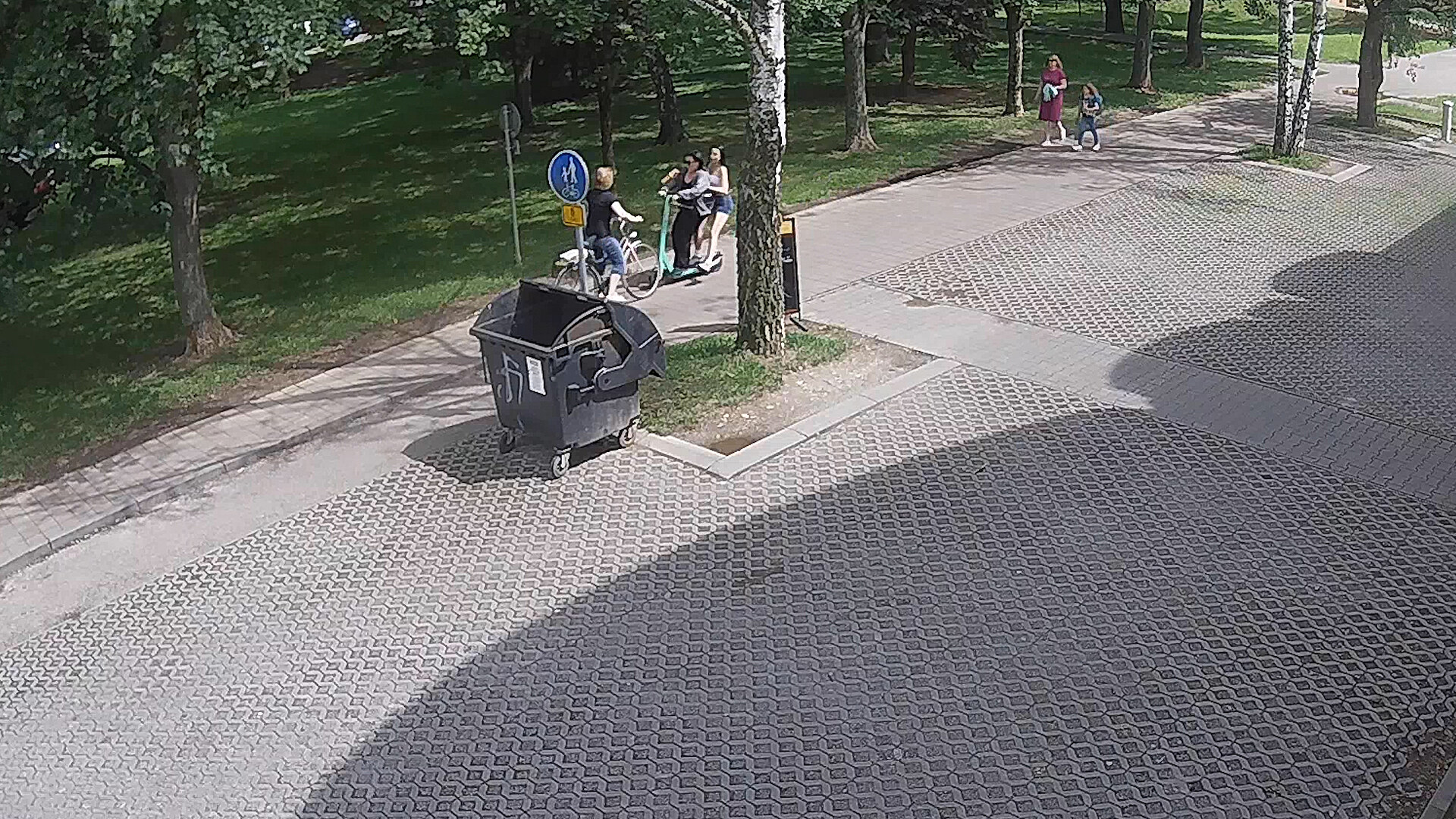 Druhá nehoda se stala 15. června v 17.50 hodin v parku Na Sadech. Dva chlapci mladší 15 let jeli ve směru od Rudolfovské k Lannově třídě. Mladík za řídítky se plně nevěnoval řízení a srazil chodce, který šel po pravém okraji cyklostezky. Ten se po pádu těžce zranil a na místě ho museli ošetřit záchranáři.