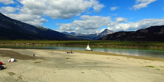 Lenost světem vládne, a tak jsme si naložili jeden vak na záda, druhý na krk za něj, třetí před sebe, do ruky pádla a pod paži barel. Kdybyste nás viděli, asi byste se hodně nasmáli. Plán na třídenní zastávku zněl: vyprat oblečení i sebe, napéct chleba a postavit plachetnici.