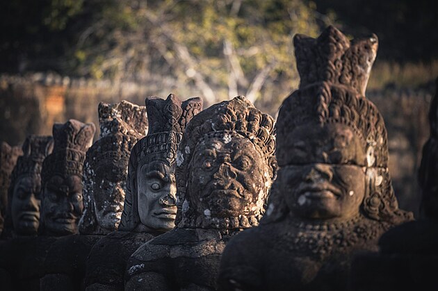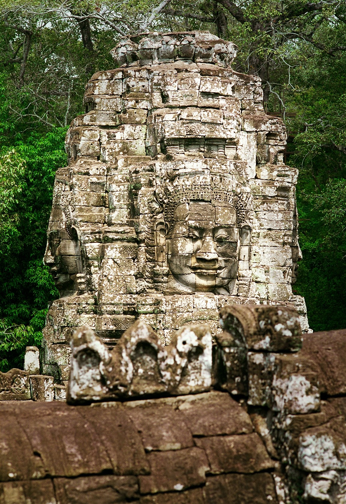 Součástí komplexu je také chrám Bayon, který zaujme desítkami kamenných tváří s tajemným úsměvem. Každá z nich je vytesána do mohutných věží.