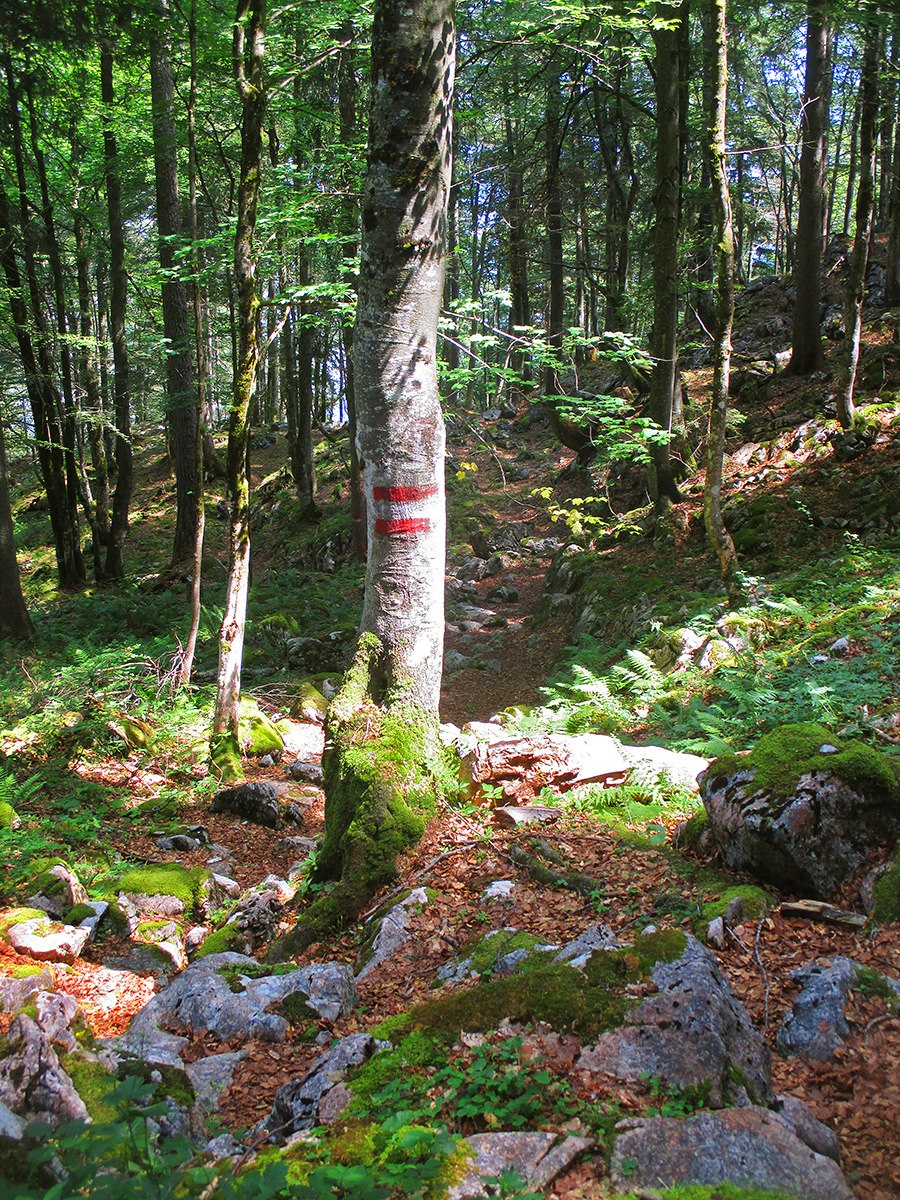 Vítejte v Rakousku. Jen takto je v Kamenném moři vyznačen průběh státní hranice.
