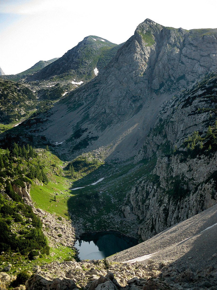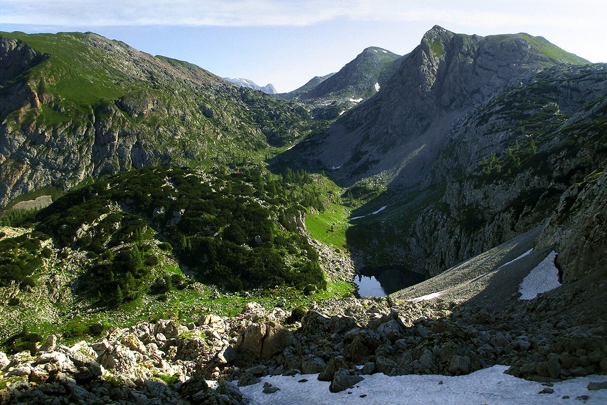 Pohled ze sedla Hochgschirr k severu přes jezero Seeleinsee