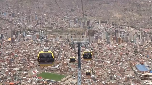 „Lanovky nám tady pomáhají, jsou opravdu rychlé. Občas jezdím také minibusem, ale ten jezdí pozdě,“ říká jedna z obyvatelek bolívijské metropole Rosa.