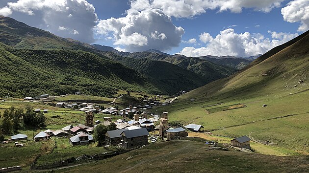 Po sestupu dolů jsme pokračovali dál po strmých horských serpentinách a pak jsme dorazili do našeho cíle. Dějiny Ušguli sahají až do 9. století, kdy se tu začaly rýsovat první osady. Díky skvělému stavu, ve kterém se dochovaly, a zároveň originální tradiční architektuře, bylo Ušguli spolu s nedalekou Mestií a okolními oblastmi zapsáno na seznam světového kulturního dědictví UNESCO jako součást kraje Horní Svanetie. Krajina je tady opravdu úchvatná a dechberoucí. Bezpochyby to byl jeden z nejkrásnějších výhledů v mém životě.