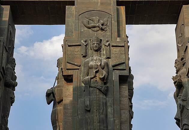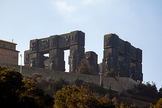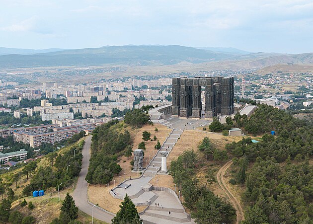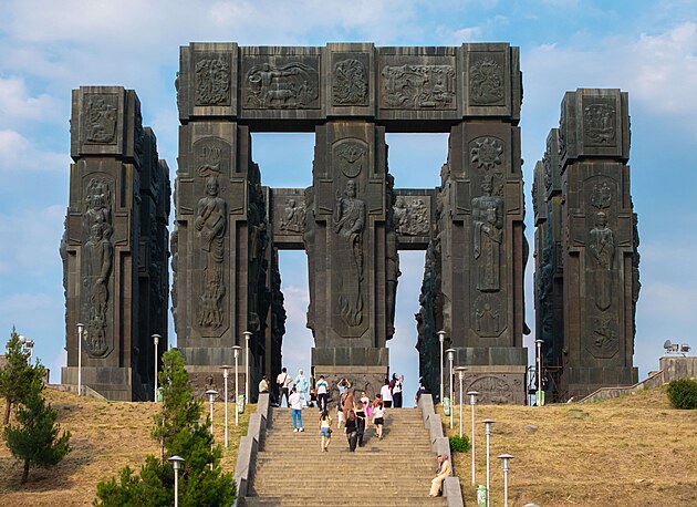 Když se člověk vyšplhá po dlouhém schodišti na vrchol kopce nad severním okrajem města Tbilisi, ocitne se před monumentem, který působí téměř myticky.