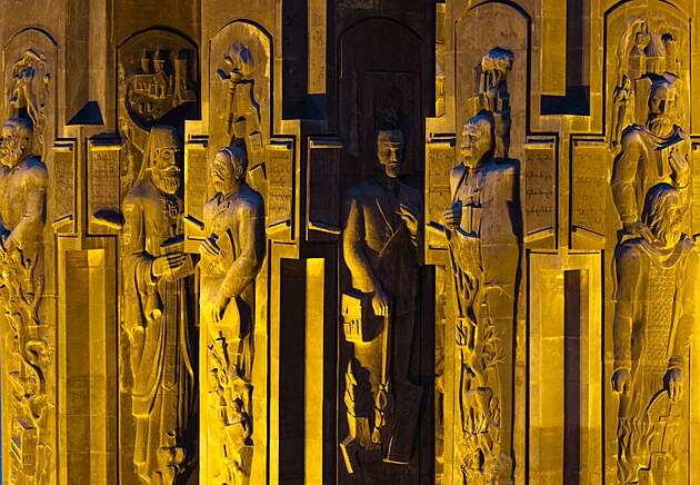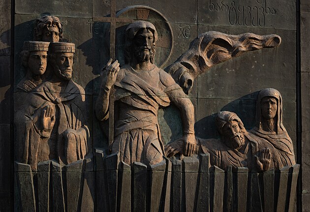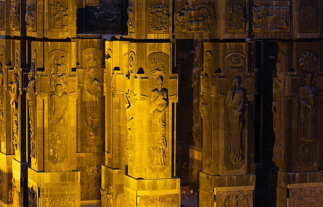 V kombinaci s reliéfy na sloupech vytváří celý areál symbolickou cestu dějinami, od starověkých vládců přes biblické motivy až po současnou identitu gruzínského národa.