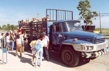 Jak se také cestuje na Kubě - na korbě nákladního auta. |