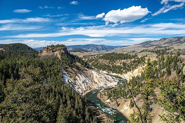 Z některých vyhlídek je možné dohlédnout až na vzdálené masivy pohoří Beartooth Mountains, což jen podtrhuje pocit obrovského prostoru a svobody.