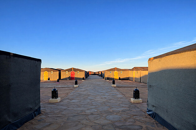 Zřejmě nejkrásnější ubytování jsme měli v pouštním táboře Palmeras Y Dunas Luxury Camp na okraji Sahary. Podobné stany slouží jako zázemí pro cestovatele mířící k dunám Erg Chebbi. Zajištění pobytu proběhlo ve spolupráci s cestovní kanceláří ČEDOK.
