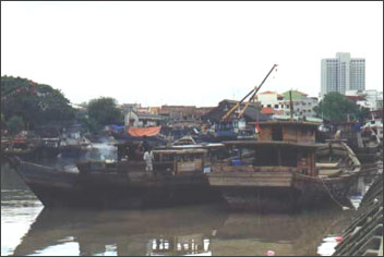 ![]() V oblasti se pohybuje velké množství lodí všeho druhu, pátrání po pirátech je proto velmi složité. Snímek je z Melaky na malajské straně průlivu. |