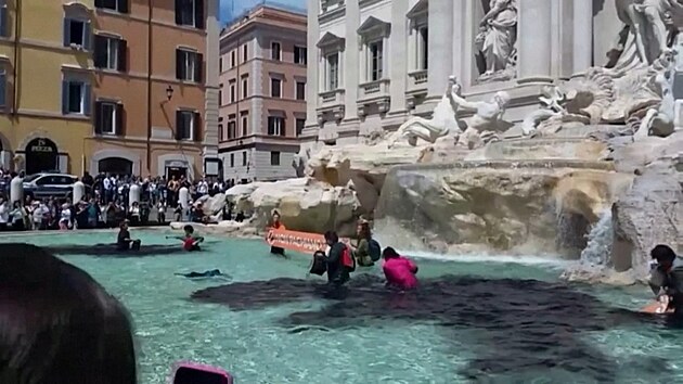 Aktivisté ponoření ve fontáně drželi v rukou transparent Nebudeme platit za fosilní paliva a křičeli „naše země umírá“. Policie vyprovodila aktivisty za přihlížení desítek turistů, někteří z nich aktivistům hrubě nadávali.