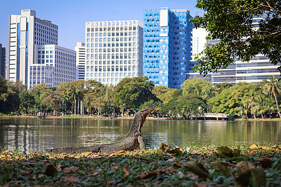 Za jakési epicentrum, místo, kde jsou nejčastěji k vidění, se počítá park Lumphini. Tady se, ve stínu stromů a mrakodrapů, dá narazit na desítky, možná stovky varanů. Některé exempláře jsou skutečně „ještěrkami“, jiné dorůstají velikosti vykrmených leguánů. A ti největší si hoví v jezerech nebo se vyhřívají na kamenech ostrůvků.