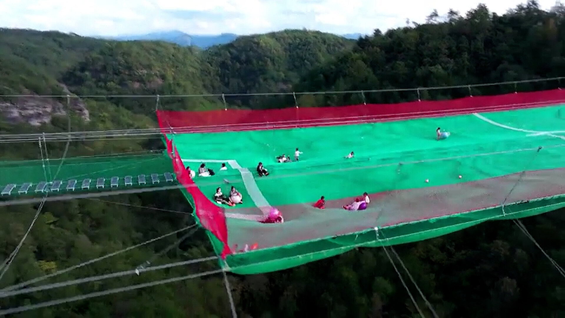 Dětské hřiště se veřejnosti poprvé otevřelo v říjnu loňského roku. Obrovská síť z polyethylenu je natažená mezi dvěma útesy a má rozlohu 1 600 metrů čtverečních. Hřiště má dvě úrovně, horní je určena dětem, spodní pak slouží jako bezpečnostní bariéra.