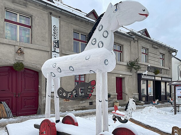 Kávové misionářství v Jimramově naopak zajišťuje romantická kavárna „Kovářova kobyla“, obklopená koníky coby poutači. V interiéru ve stylu biedermeieru by klidně mohla sedět u kafe Božena Němcová a mohla by si tam dát pozoruhodné zákusky, jeden ve tvaru hruštičky, ale nebyl to marcipán, prý něco plněného čokoládou. A pak tam byl dortík podobný rakvičce za víc než 100 korun. Omlouvám se kavárnicím, že jsem vypadal jako vagabund a vzal si jen čokoládové lízátko s sebou, ale já měl před sebou ještě kus cesty a pomalu se stmívalo.