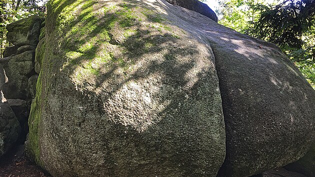 A když už jsme u těch zadnic, můžeme navštívit i druhé místo s tímto jménem v české krajině. Skalní útvar Ďáblova prdel v České Kanadě je mnohem známější než výše zmíněná osada. Vypravil jsem se tam po zelené značce z Valtinova a mohu potvrdit, že název je skutečně přiléhavý. Skála v malém lesíku vypadá jako dva metry vysoká vystrčená zadnice klečící postavy s nezbytnou čárkou uprostřed. Další vodorovné šrámy jsou v levé části, jako by někdo čerta přes ten zadek praštil. Vedle nechybí malé odpočívadlo a informační tabule.