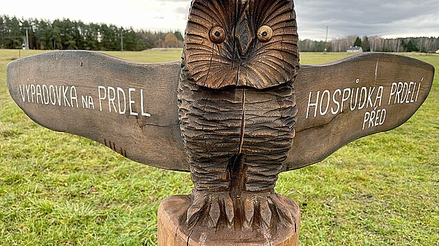Ale zpátky do osady Prdel. Vlastně jsou to jen tři bílé domy na louce a cedule upozorňující na začátek a konec osady. Prdel člověk přejde za minutu a může ji na konci snadno opustit. Jak se jmenuje obyvatel Prdele, už raději spekulovat nebudu. Cestu do osady ukazuje u hospody vyřezaný rozcestník ve tvaru velké dřevěné sovy, který má na křídlech nápis: „Výpadovka do Prdele“. Původ názvu osady Prdel je docela zajímavý a originální. „Je jedna varianta, proč se tak osada jmenuje. Prý tam býval rybník a u něj mlýn a ten stál pod hrází, takže tam byla tma i ve dne…“ říká mi do telefonu nájemce Hospůdky Před Prdelí.
