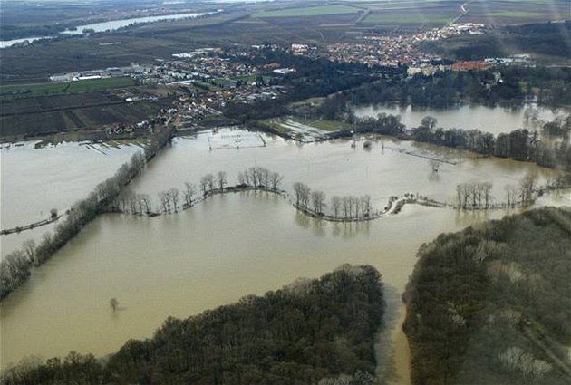 Povodně na jižní Moravě - jezero mezi Blučinou a Židlochovicemi, 3.4. 2006