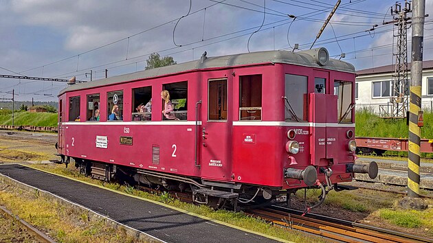 Motoráčku spolku Lokálka Group zbývá už jen pár kilometrů cesty. Po novém mostě přejede řeku Úslavu a po několika obloucích vjíždí do stanice Nezvěstice.