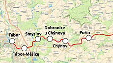 Trať 224 z Tábora do Pelhřimova si můžete projet za 4 minuty: