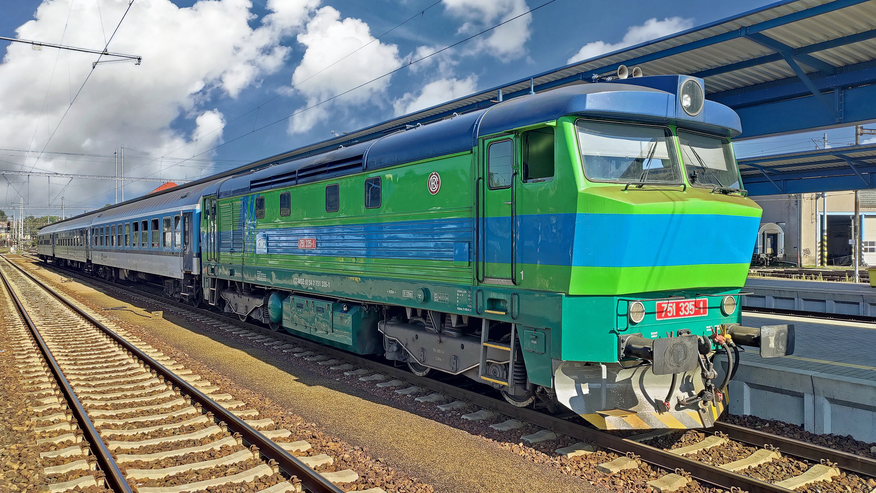 Většina tratí někdejší Severozápadní dráhy je elektrifikovaná, ovšem s výjimkou úseku mezi Jihlavou a Znojmem. Proto jsme na cestu za vínem vyrazili Bardotkou 751.335.