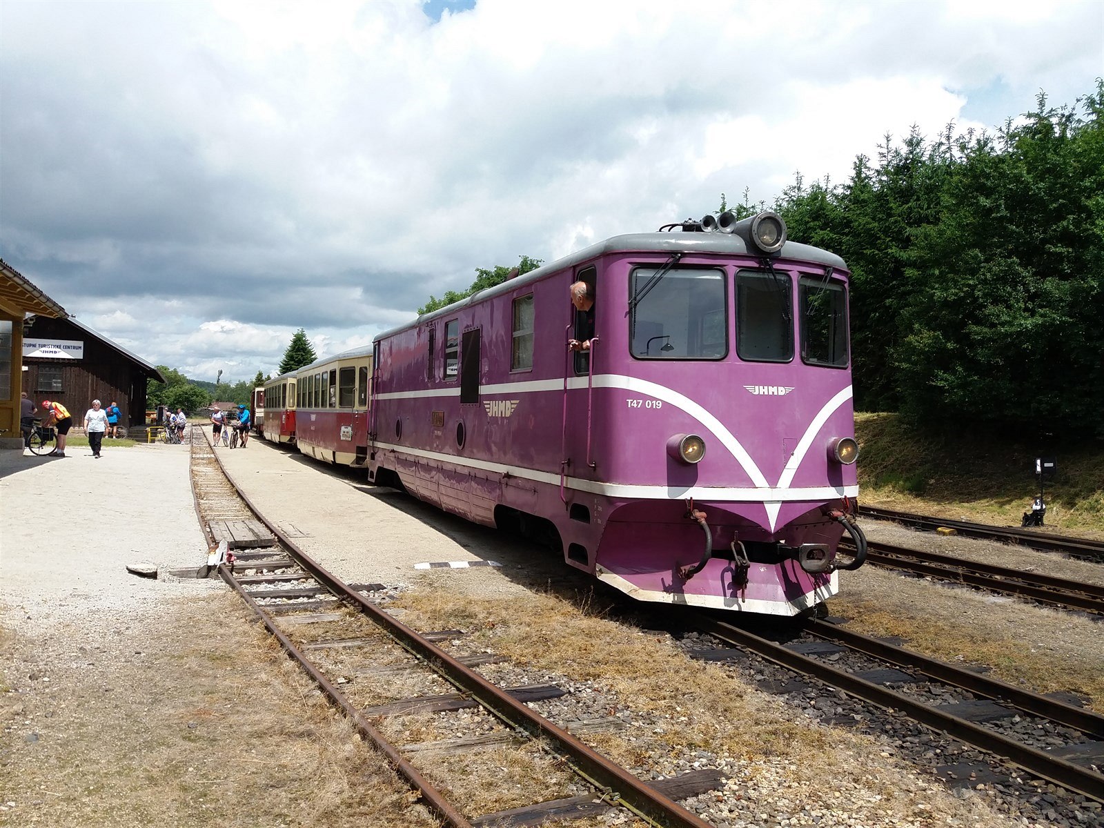 O Jindřichově Hradci, místě startu naší cesty, jsme už psali ve článku o obrataňské úzkokolejce. Jízdu začínáme tam, kde jsme minule skončili, na úzkokolejném nádraží, mineme úzkorozchodné depo a napojíme se na unikátní splítku.