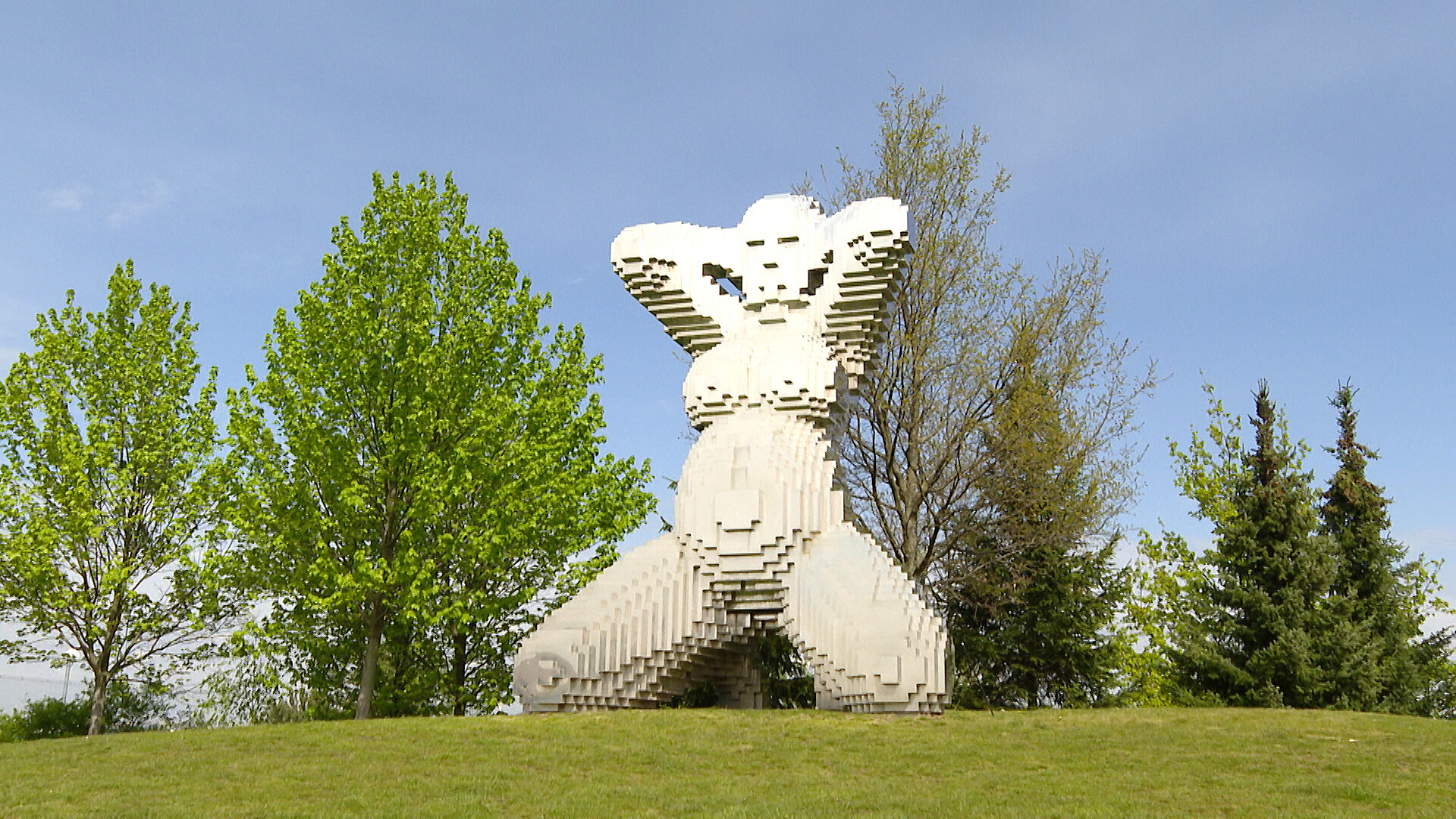 Ale nejroztomilejší je určitě „Mazlík“ Michala Trpáka, taková veliká desetinohá kočička. Jeho zdejší „humanoidy“ o kus dál už jsem znal. Kopie tohoto díla – spěchající kancelářské krysy s aktovkami – stojí (nebo tedy spíše pochoduje) na pěší zóně v Českých Budějovicích.