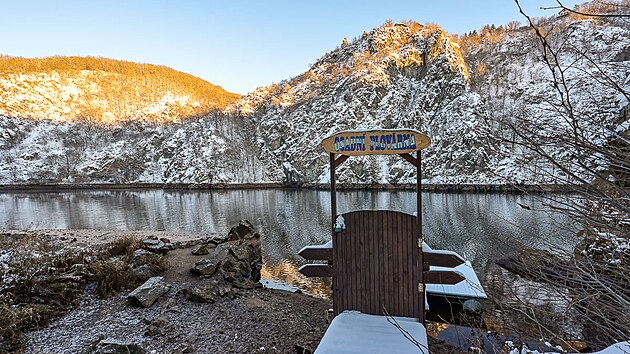 Romantiku jedna z nejstarších trampských osad v Česku nabízí dodnes, jen namísto hukotu peřejí se její obyvatelé mohou oddávat pohledu na hladinu přehrady, ze které se na protilehlém břehu zvedají kolmé skalní stěny. Z dálky můžete také obdivovat Mravenčí skálu se vztyčeným totemem na jejím vršku. Jde o pietní místo osady, a proto na něj prosím nevstupujte.