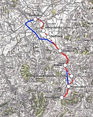 Protože se na dráhu v Kopřivnici napojovalo vlečkové kolejiště vagonky Tatry, je logické, že se na trati do Studénky zajížděly všechny tatrovácké výrobky. Ať už vagony nebo motorové vozy. Svoje první kilometry tady najela i slavná Slovenská strela.