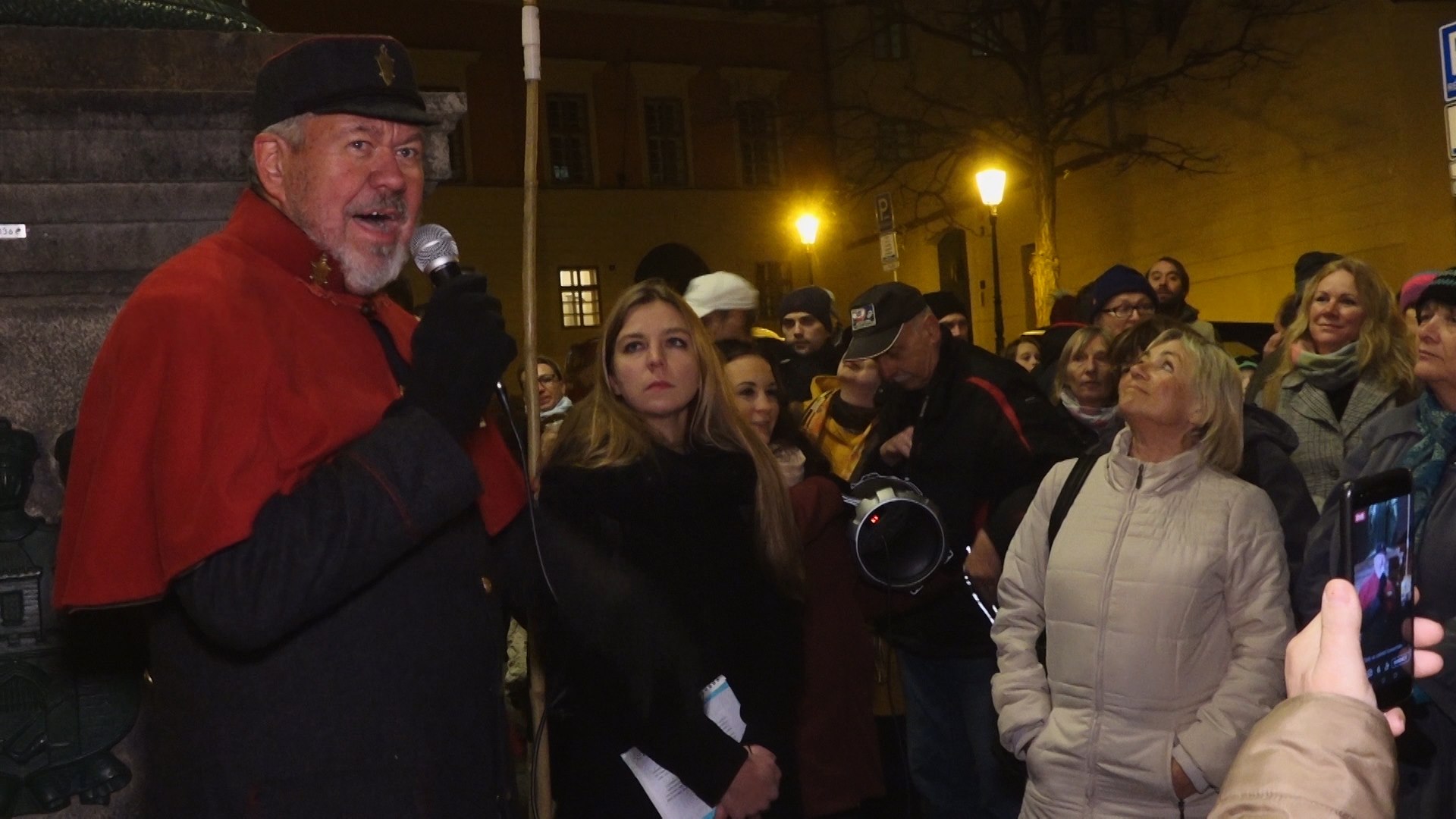 „Jsou tady nějací Češi?“ volá na konci mostu do davu pražský lampář. „My jsme ze Znojma!“ ozve se menší skupinka. Poté si s lampářem vymění pár srdečných slov a adventních přání, a nakonec opět dojde na společnou fotografii.