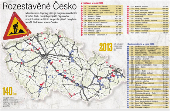Pokud vše půjde dobře, přibude nejvíce kilometrů nových komunikací v okolí Hradce Králové a Pardubic. Zde by měly podle ministerského harmonogramu být během roku rozestavěny celkem čtyři dálniční úseky. Jde o dvojici staveb na D35 z Opatovic nad Labem do Časů a odsud dále do Ostrova a dvojici pokračujících úseků dálnice D11 z Hradce Králové do Smiřic a poté do Jaroměře.