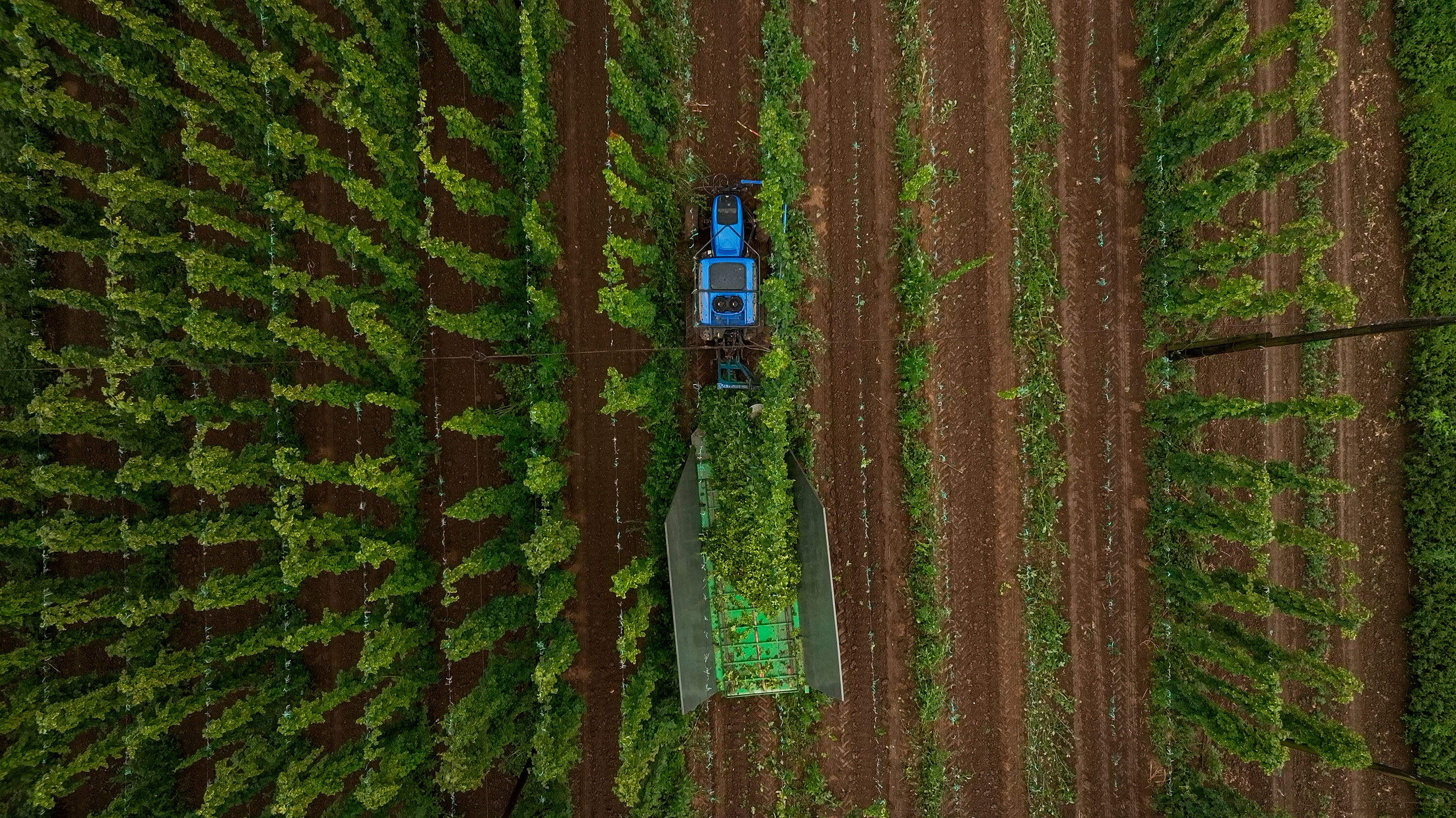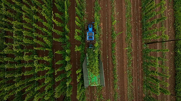 Ještě před pár desítkami let se chmel sbíral ručně do košů a sušil na slunci. Dnes už to bez moderní techniky nejde. „To, co by parta brigádníků dělala celý den, zvládne traktor za pár hodin,“ říká Pavel Ježek z firmy AGRIMA Žatec, která dodává mechanizaci. „Traktory jsou většinou v celkové šíři mezi 180 cm až dvěma metry, aby bezpečně projely celým řádkem, mají vepředu rozrážecí šípy a také orámované střechy kabin, aby se réva někde nezachytila,“ dodává Ježek.