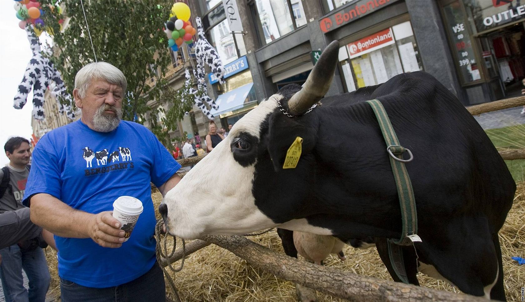 Slavnostní otevření vzbudilo v centru metropole rozruch - před stánkem vyrostl palouk s ohradou, ve které odfukovala živá kráva obklopená balíky sena. Široko daleko se rozléhalo bučení krav z reproduktorů. Firma tak chtěla zdůraznit svou image, že si zakládá na šetrnosti k životnímu prostředí.